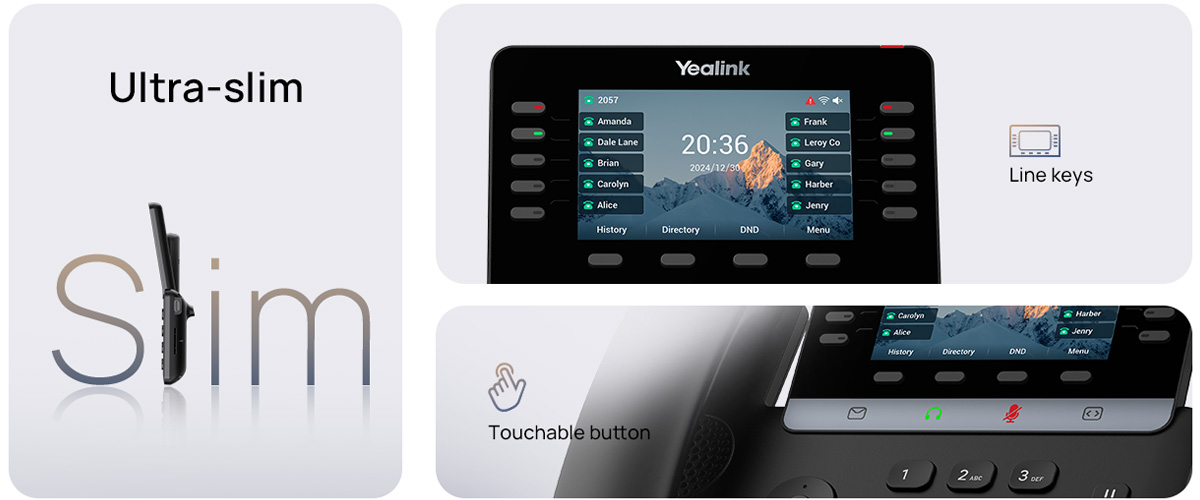 スリムなボディ、カラーディスプレイ、タッチ操作対応ボタンを備えたまったく新しいファッショナブルなデザイン。