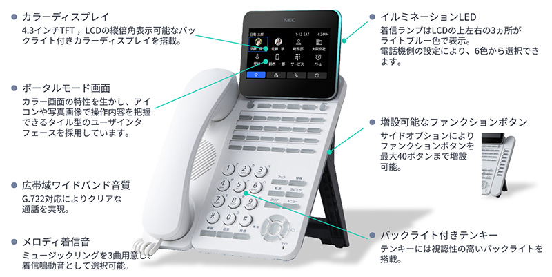 UNIVERGE DX700シリーズは、自由度と柔軟性を備えたIPネットワークと融合し、ここからのワークスタイルやワークスペースの変革を支えるSIPマルチラン電話機です。