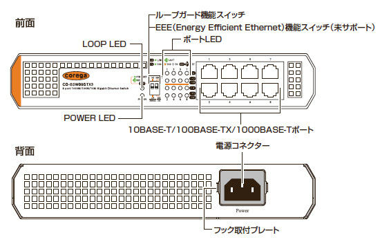 | 商品名 | 4年保証 8ポート電源内蔵 スイッチングハブ「CO-BSW08GTX3」 |