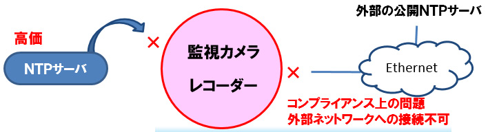 背景:コンプライアンス上、セキュリティ性の高い映像が保存されているネットワークは外部の公開NTPサーバに接続できないケースが往々にしてあります。
