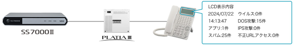 ボタン電話装置のLCDにSS7000Ⅲのウイルス検知数等を表示