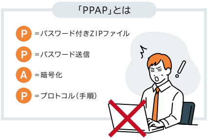 2020年11月に政府は、中央省庁での 「PPAP」とは パスワード付きZIPファイル(PPAP)の利用廃止を表明しました。