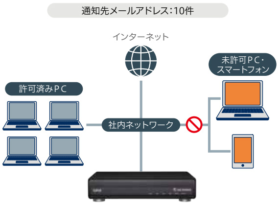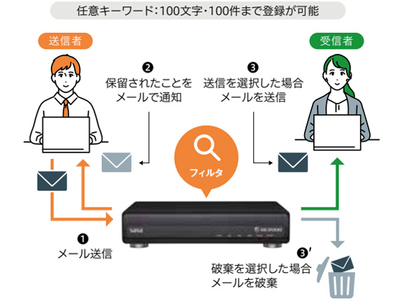 ・本製品はメ-ルによるセキュリティ事故や、不正端末からの情報漏えいのリスクを低減させるための装置です。本製品を導入することによりそのリスクを完全に取り除くことを保証するものではありません。・本製品はネットワーク機器です。正しい知識を持った方が設置および初期設定を行ってください。