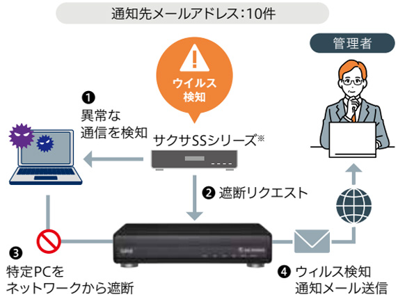 ・FTP送信データのウイルス検知、SMTPメール送信のウイルス添付が対象です。