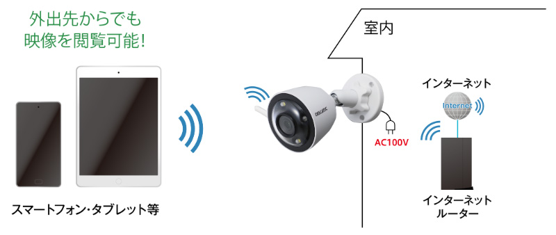 ※ カメラへは、電源供給のために別途AC100Vコンセントが必要です。