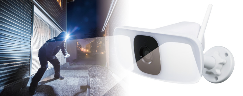 明るさ全光束1500lm搭載で夜間も鮮明に撮影することができ、ライトを照らすことにより侵入の抑止にもお役立ていただける。専用アプリ「みまもる eye」から手動でON・OFF出来るだけではなく、撮影範囲の動きに検知し、自動点灯するモードも搭載。