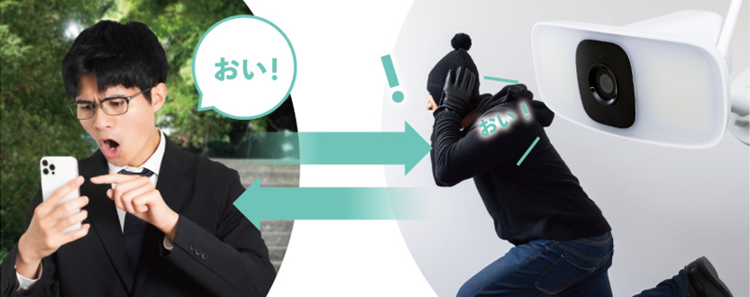 万が一の侵入者が現れた際も威嚇効果としてアラートや警告音声機能や、声掛けの音声を変換する機能を搭載。