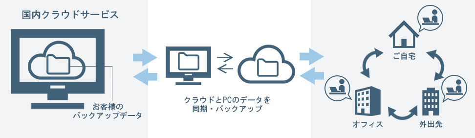 PCのファイルデータのみを国内クラウドへ自動でアップロード。