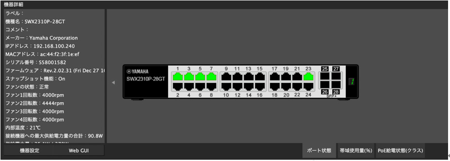Yamaha LAN Monitorは、各ネットワーク機器のLANポート単位での通信量やPoE給電量、エラー発生状況なども確認できます。 最近はIPカメラや映像エンコーダー/デコーダーといった映像機器や、ADECIAのようにマイクやスピーカーなどの音響機器をLANケーブルで接続する「映像・音響システムのネットワーク化」が進んでいます。